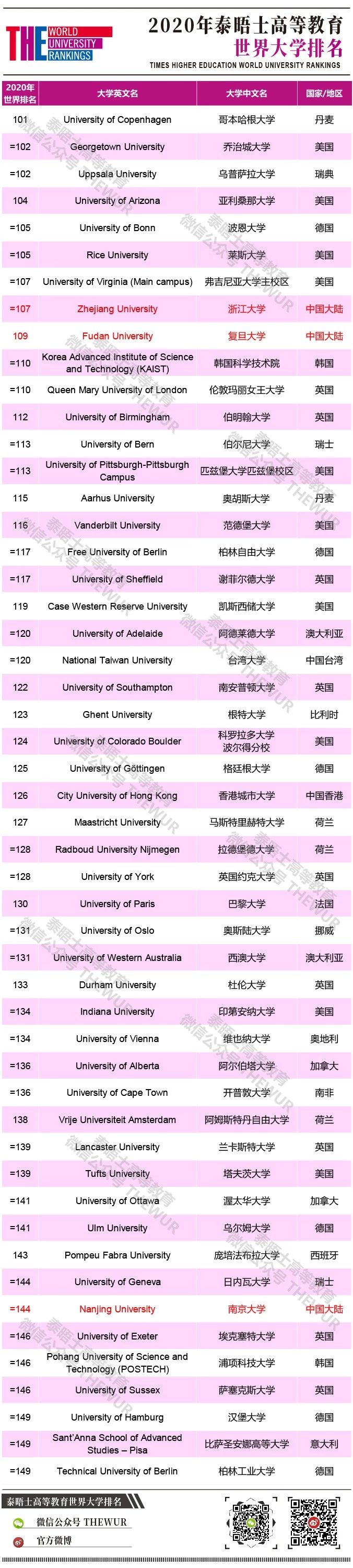 泰晤士高等教育(Times Higher Education) 于9月12日凌晨在與瑞士蘇黎世聯邦理工學院(ETH Zurich)聯合舉辦的“世界學術峰會”上發布了2020年泰晤士高等教育世界大學排名。