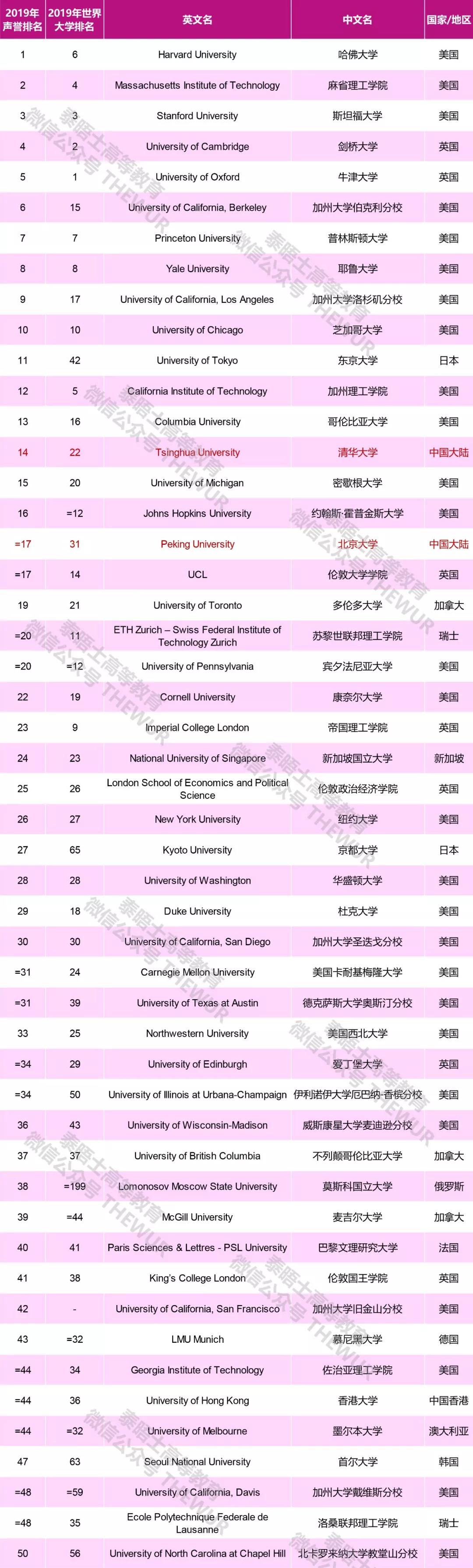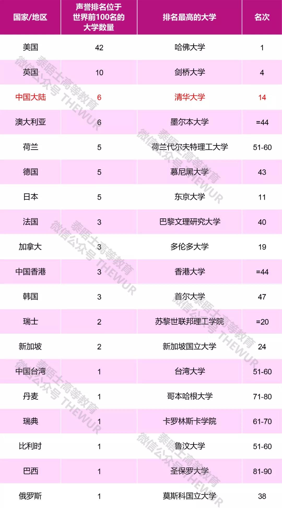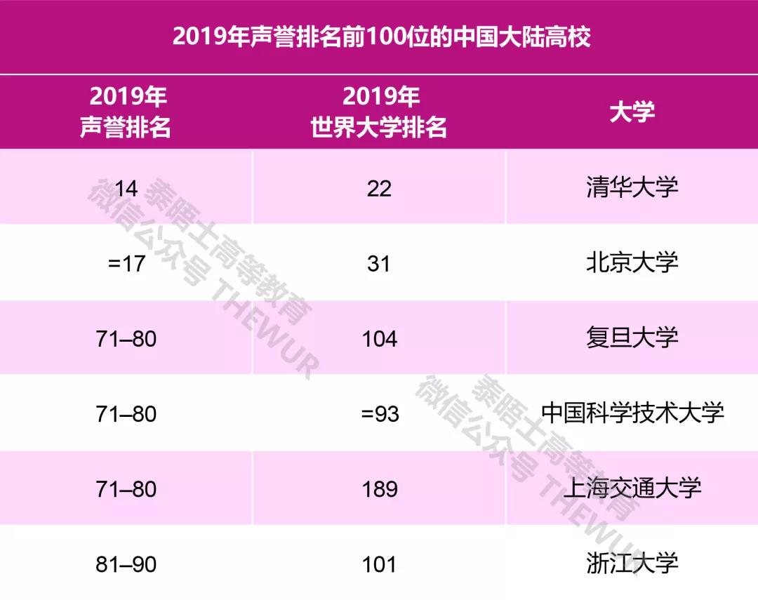 2019年泰晤士高等教育世界大學(xué)聲譽(yù)排名揭曉,6所中國大陸高校進(jìn)入世界前100名!一起來看!