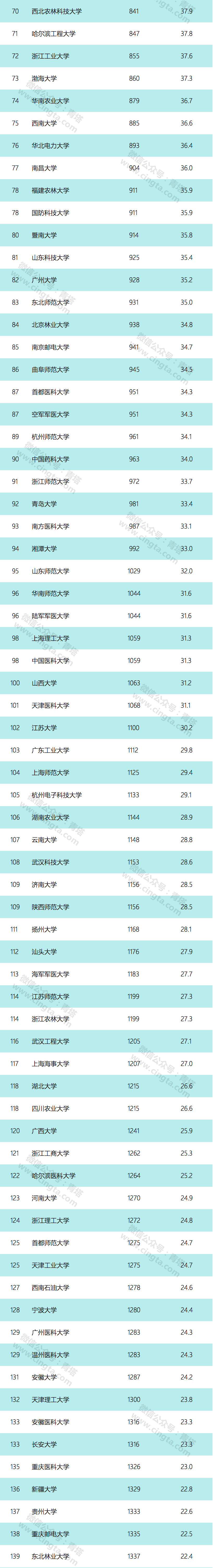 中國香港地區(qū)共有7所高校上榜,排名最高的是香港大學(xué),居全球100位。中國澳門地區(qū)共有2所高校上榜,其中澳門大學(xué)位居全球575位,澳門科技大學(xué)居全球1044位。中國臺灣地區(qū)共有26所高校上榜,其中排名最高的是臺灣大學(xué),排名全球186位,相比去年下降20位。