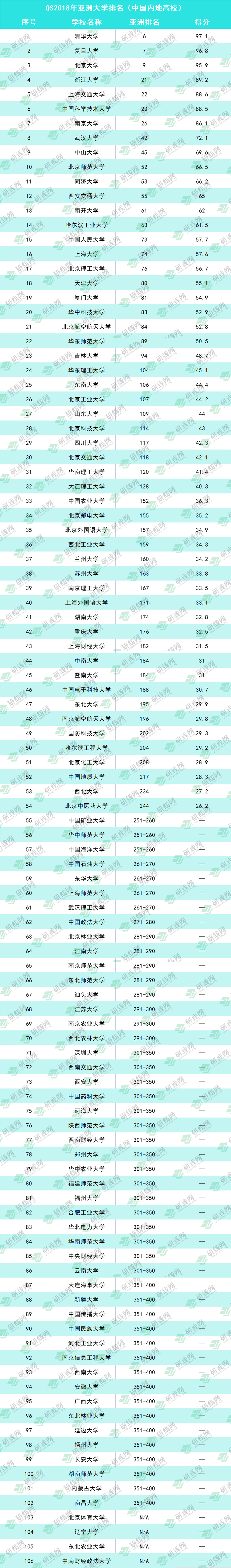 QS發(fā)布了2018亞洲大學排行榜(QS University Rankings Asia 2018),來自亞洲不同國家和地區(qū)的400+所高校上榜。中國140+所大學進入亞洲400強,數(shù)量亞洲第一。