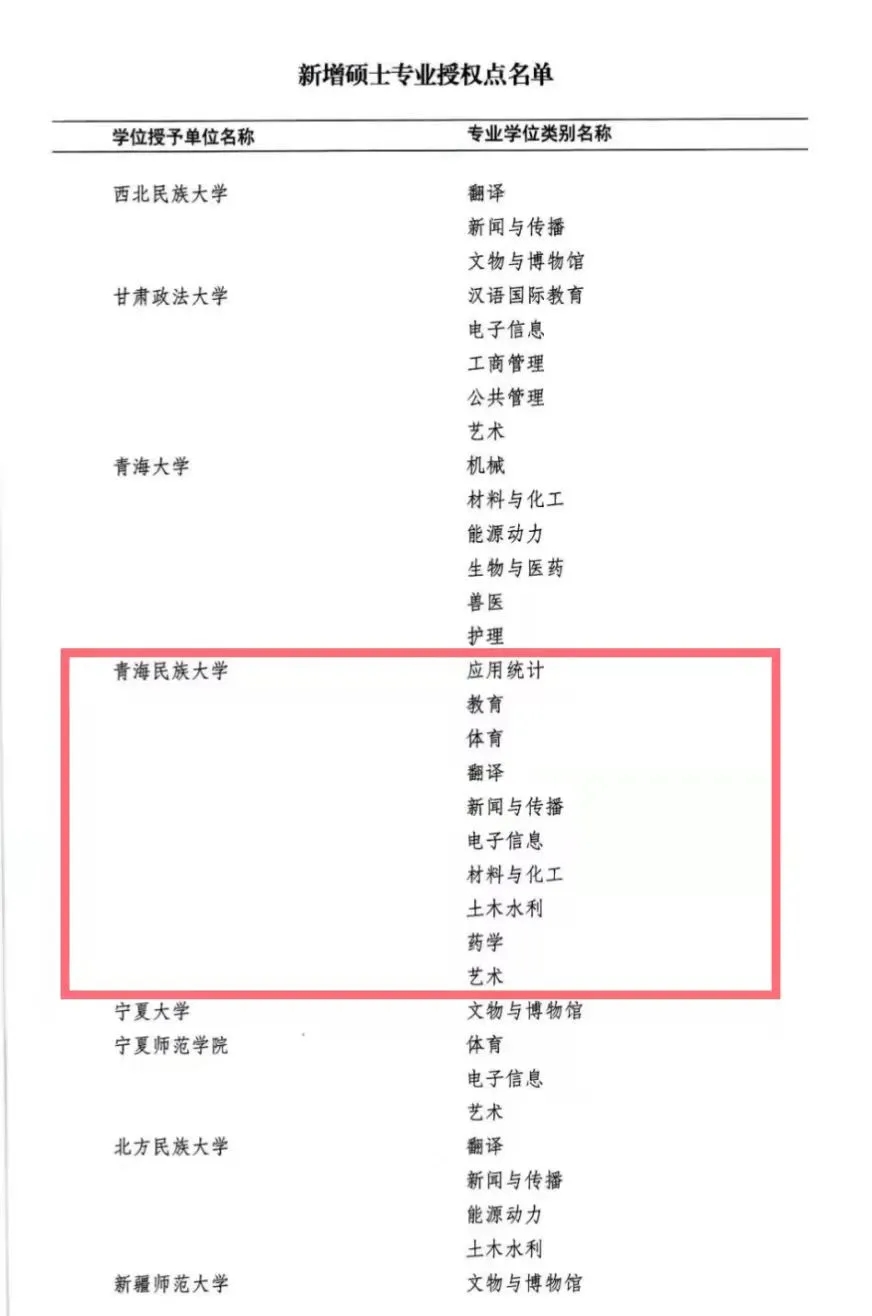 以上就是小編分享“2020年新增碩士點(diǎn):青海民族大學(xué)成功獲批15個(gè)碩士學(xué)位授權(quán)點(diǎn)”的全部?jī)?nèi)容,想了解更多相關(guān)信息,請(qǐng)持續(xù)關(guān)注本網(wǎng)站。