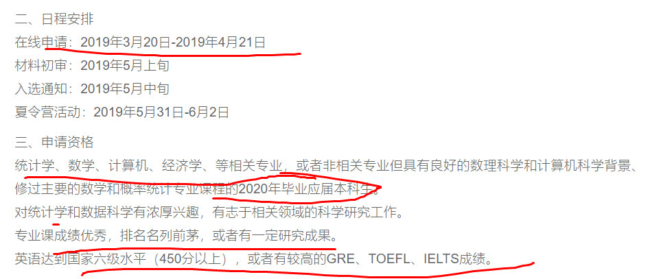 比如:清華大學統計學研究中心2019年全國優(yōu)秀大學生夏令營通知,4月21日就已經結束在線申請了!