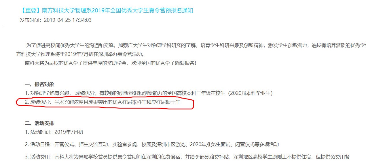 比如:南方科技大學物理系,報名對象第2條:成績優(yōu)異、學術興趣濃厚且成果突出的優(yōu)秀往屆本科生和應往屆碩士生。