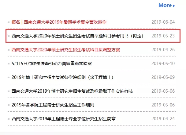 西南交通大學(xué)提前公布了自命題科目參考用書,公告中也明確指出《西南交通大學(xué)2020年碩士研究生招生章程》預(yù)計(jì) 2019 年 9 月公布。