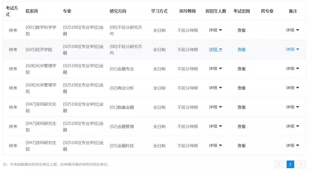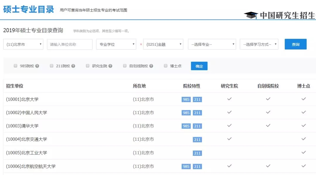 點(diǎn)擊查詢后,就能知道北京招收金融專碩的學(xué)校都有哪些——