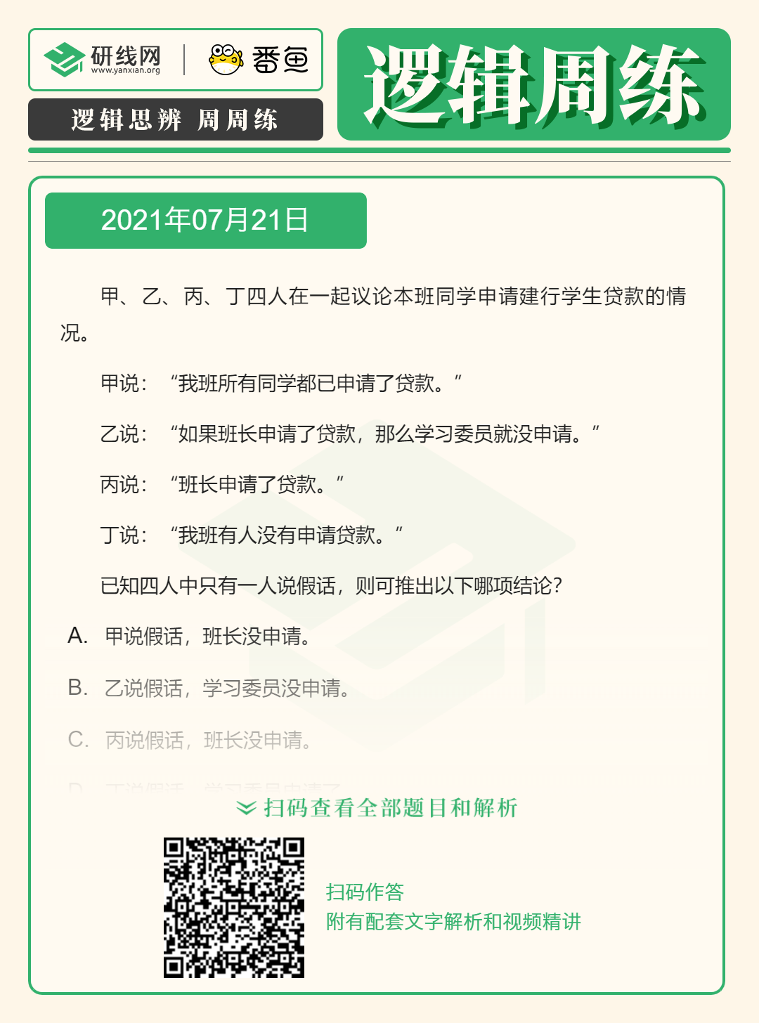 以上就是小編為大家整理“2022考研邏輯備考:7月21日邏輯專項練習及答案”的全部內容,希望各位考生堅持利用起來,想要獲取更多內容請持續(xù)關注本網(wǎng)站。