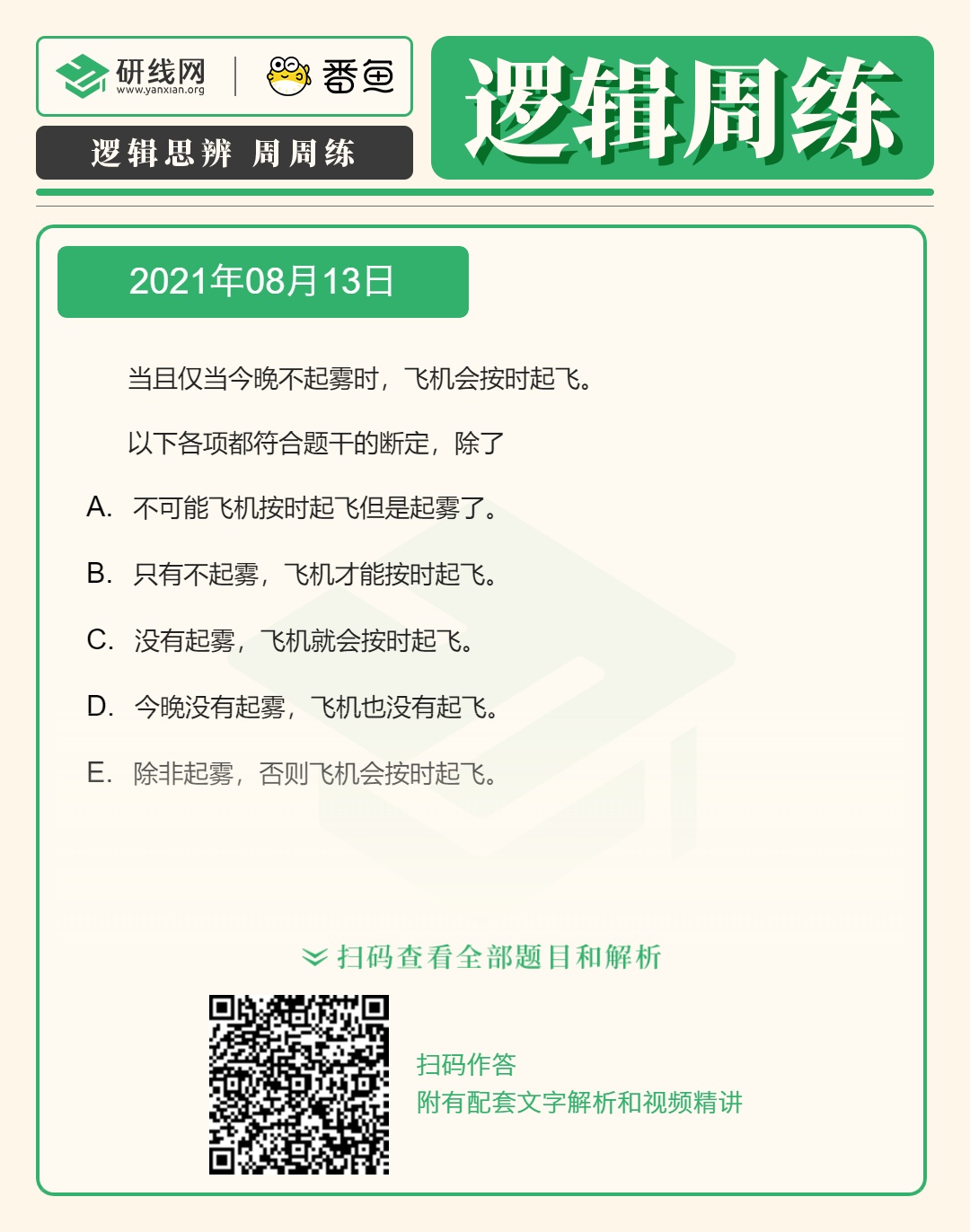 2022考研邏輯備考:8月13日邏輯專項練習及答案