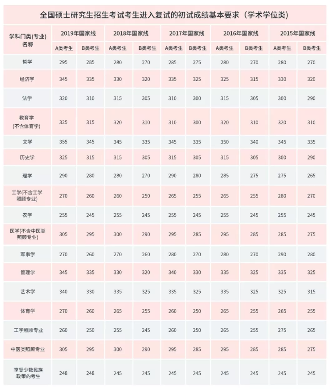 國家線根據各個學科門類劃分,又形成了各個學科門類的分數線。