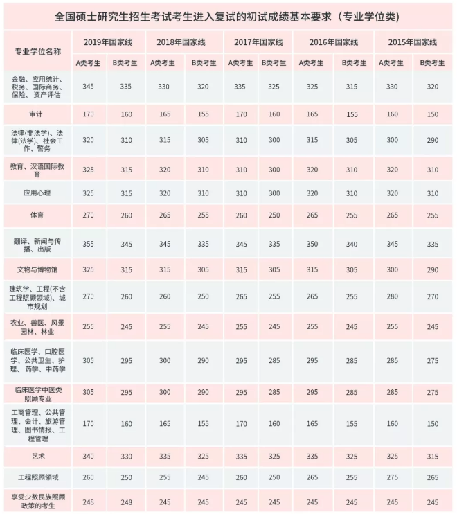 全國碩士研究生招生考試考生進入復試的初試成績基本要求(專業學位類)