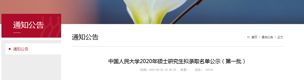 點擊查看:中國人民大學碩士研究生擬錄取名單公示(第一批)