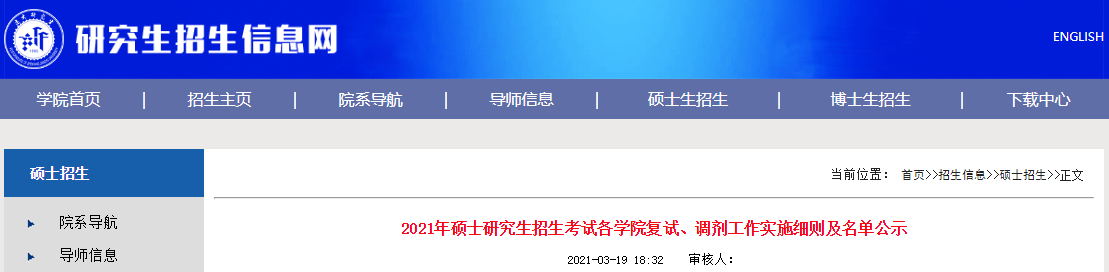 原文標題:2021年碩士研究生招生考試各學院復試、調劑工作實施細則及名單公示