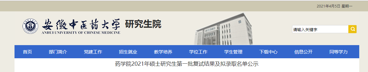 以上就是“2021考研擬錄取名單:安徽中醫(yī)藥大學(xué)藥學(xué)院2021年碩士研究生第一批復(fù)試結(jié)果及擬錄取名單公示”的全部?jī)?nèi)容,更多錄取名單相關(guān)內(nèi)容點(diǎn)擊2021考研擬錄取名單:全國(guó)各大院校2021年碩士研究生擬錄取名單匯總!查看詳情!