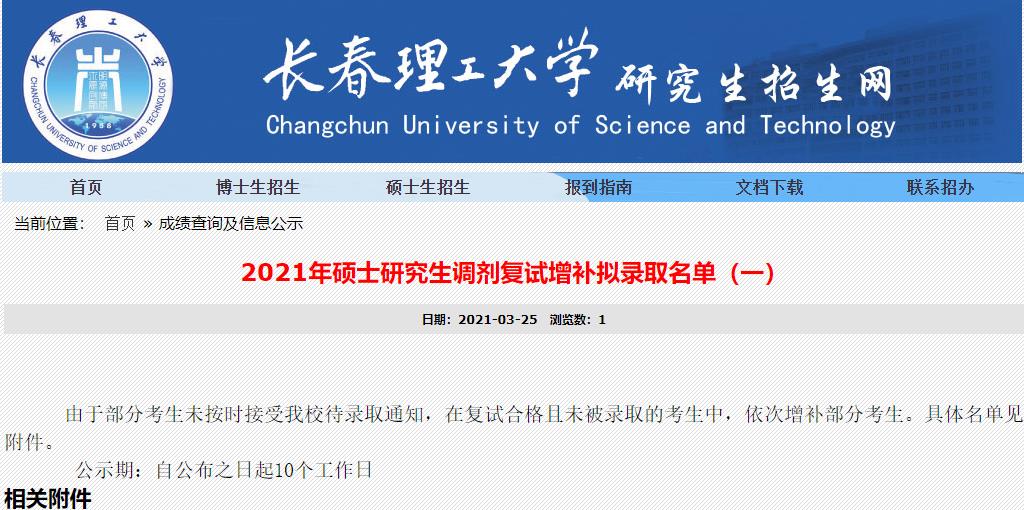 以上就是“2021考研擬錄取名單:長春理工大學2021年碩士研究生調劑復試增補擬錄取名單(一)”的全部內容,更多錄取名單相關內容點擊2021考研擬錄取名單:全國各大院校2021年碩士研究生擬錄取名單匯總!查看詳情!