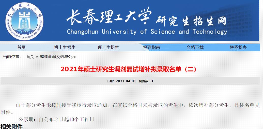 以上就是“2021考研擬錄取名單:長春理工大學(xué)2021年碩士研究生調(diào)劑復(fù)試增補(bǔ)擬錄取名單(二)”的全部內(nèi)容,更多錄取名單相關(guān)內(nèi)容點(diǎn)擊2021考研擬錄取名單:全國各大院校2021年碩士研究生擬錄取名單匯總!查看詳情!