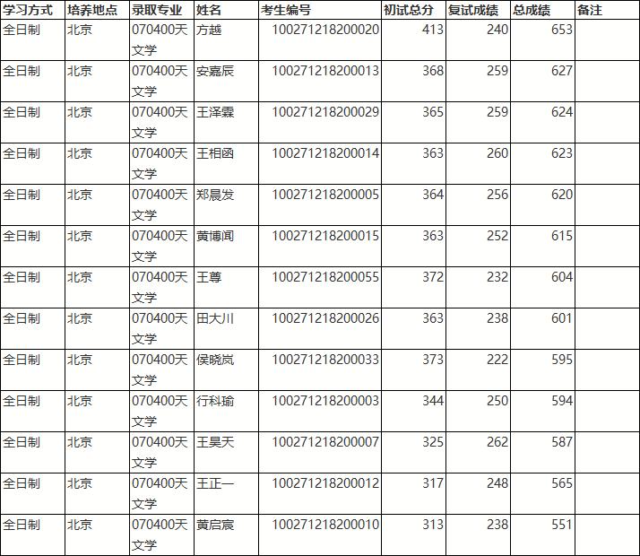 2021考研擬錄取名單:北京師范大學(xué)天文系2021年擬錄取碩士研究生名單公示