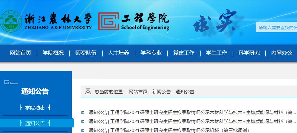 以上就是“2021考研擬錄取名單:浙江農林大學工程學院2021年碩士研究生擬錄取結果公示”的全部內容,更多錄取名單相關內容點擊2021考研擬錄取名單:全國各大院校2021年碩士研究生擬錄取名單匯總!查看詳情!