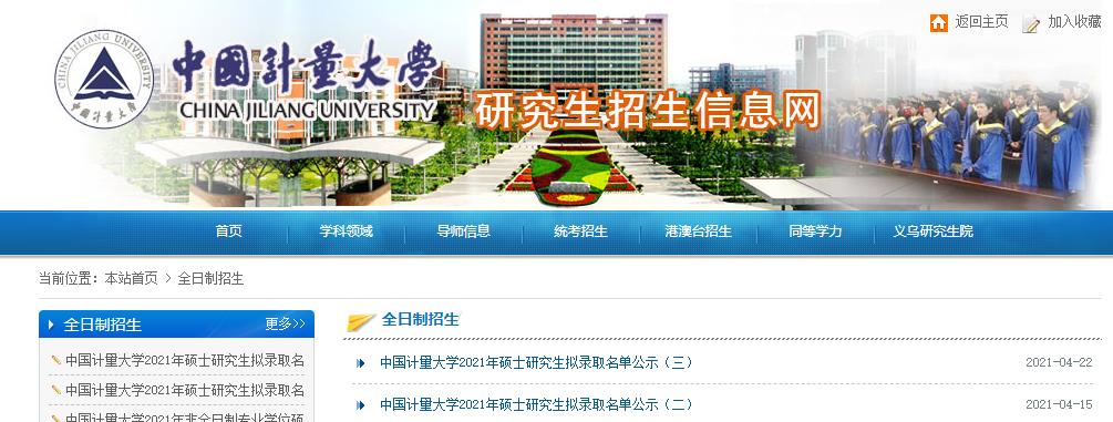 2021考研擬錄取名單:中國計量大學2021年碩士研究生擬錄取名單公示