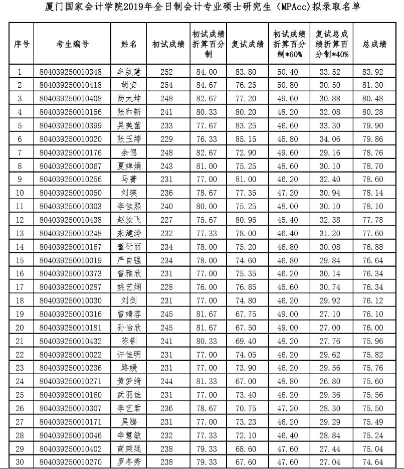 以上就是“2019年廈門國家會計學院碩士研究生擬錄取名單”的全部內容,更多錄取名單相關內容,盡在研線網“錄取名單”欄目!