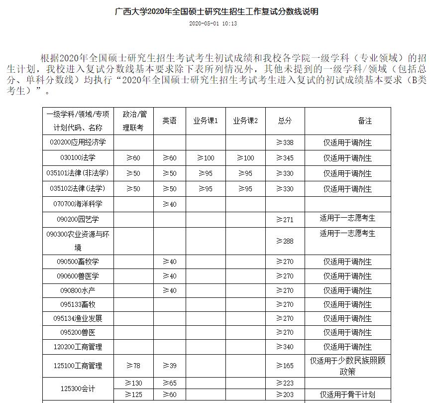 原文標(biāo)題:廣西大學(xué)2020年全國(guó)碩士研究生招生工作復(fù)試分?jǐn)?shù)線說明