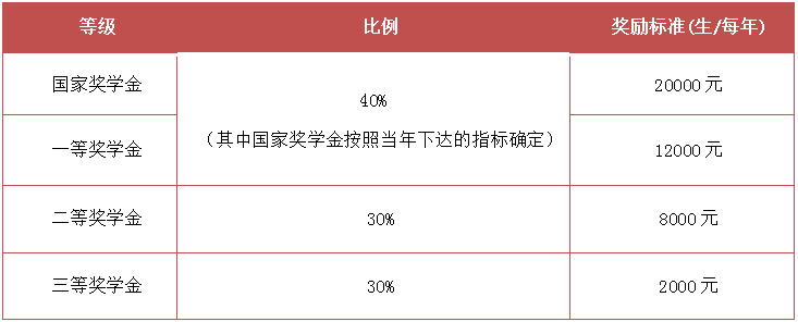 表二:全日制碩士研究生獎(jiǎng)學(xué)金獎(jiǎng)勵(lì)標(biāo)準(zhǔn)(定向除外)
