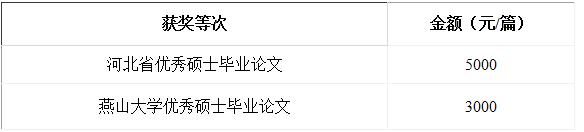 獎(jiǎng)勵(lì)對象為河北省或燕山大學(xué)優(yōu)秀碩士學(xué)位論文作者,只計(jì)最高獎(jiǎng)。