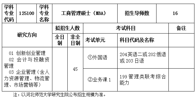 以上就是“2021MBA招生簡章:河北師范大學2021年工商管理碩士(MBA)招生簡章”的內容了,更多考研信息,請持續關注,預祝大家考研成功!