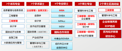 為了滿(mǎn)足多領(lǐng)域人才的不同需求,MBA項(xiàng)目在領(lǐng)域專(zhuān)業(yè)課內(nèi)開(kāi)發(fā)以下課程種類(lèi)供學(xué)習(xí):信息管理與商業(yè)大數(shù)據(jù)、項(xiàng)目管理、金融與財(cái)務(wù)、人力資源管理、市場(chǎng)營(yíng)銷(xiāo)和綜合經(jīng)濟(jì)管理,等等。除了上述方向,還結(jié)合學(xué)生背景,開(kāi)設(shè)了創(chuàng)新與創(chuàng)業(yè)、跨國(guó)經(jīng)營(yíng)與國(guó)際化、生產(chǎn)與運(yùn)作管理等方向相關(guān)的課程。