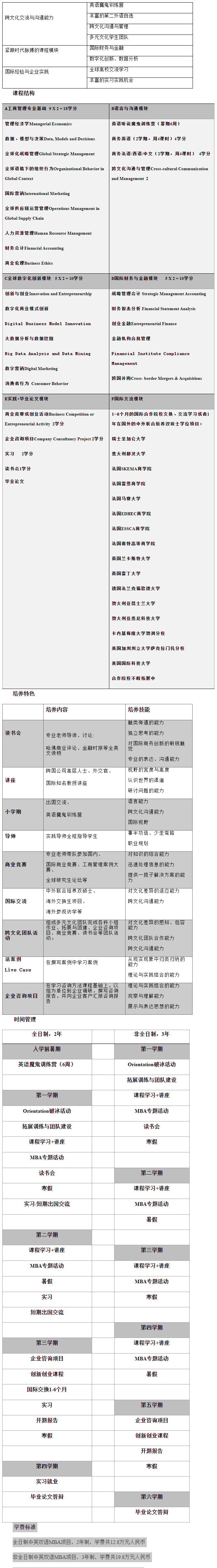 全日制中英雙語MBA項目,2年制,學費共12.8萬元人民幣