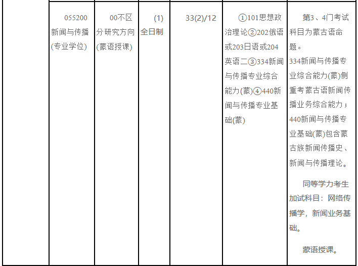 今天小編為大家?guī)?ldquo;2021MJC專業(yè)目錄:內(nèi)蒙古大學(xué)2021新傳專碩(MJC)考研專業(yè)目錄”的相關(guān)信息,希望報(bào)考本校的同學(xué)們注意查看接收。