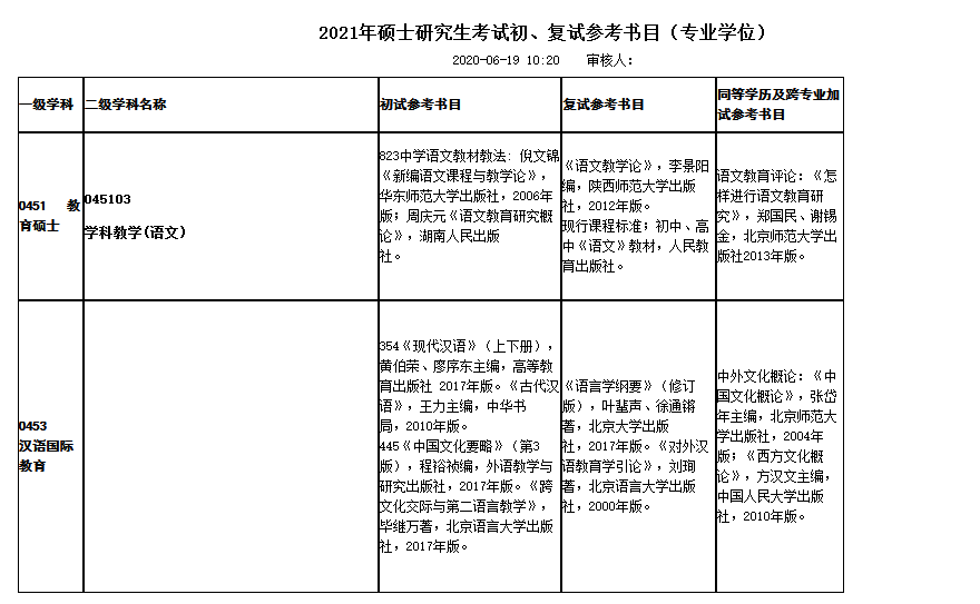 原文標(biāo)題:文學(xué)院2021年碩士研究生考試初、復(fù)試參考書(shū)目(專業(yè)學(xué)位)