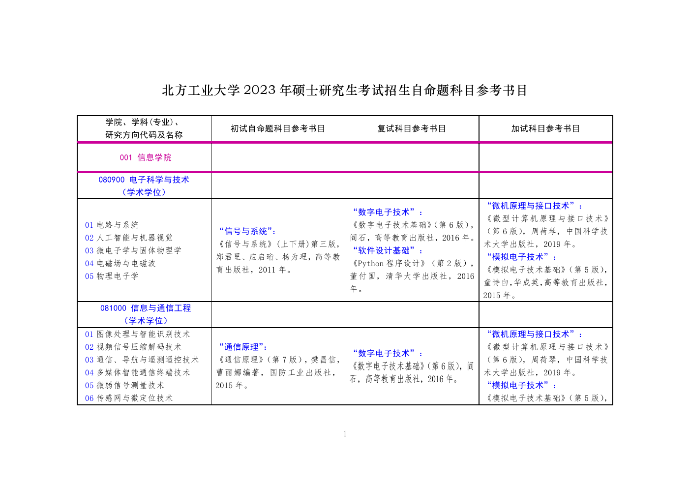 原文標題:北方工業大學2023年碩士研究生考試招生自命題科目參考書目