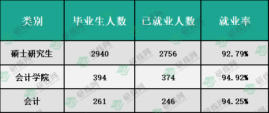 截止2020年11 月20日,中南財(cái)經(jīng)政法大學(xué)2020 屆畢業(yè)生共 8144 人,其中碩士研究生2970人,會(huì)計(jì)學(xué)院394人,會(huì)計(jì)碩士261人,就業(yè)率分別為92.79%,94.92%,94.25%,從就業(yè)質(zhì)量報(bào)告中可以看出,畢業(yè)研究生去向較為集中,協(xié)議就業(yè)占86.33%,3.67%選擇升學(xué),受到疫情影響,極少數(shù)選擇出國(guó)、出境。