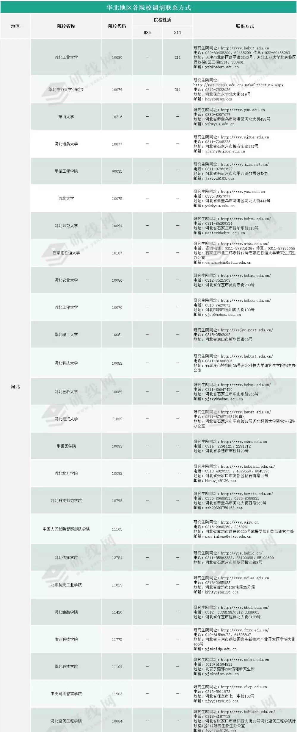 華北地區(qū)院校調(diào)劑聯(lián)系方式查詢