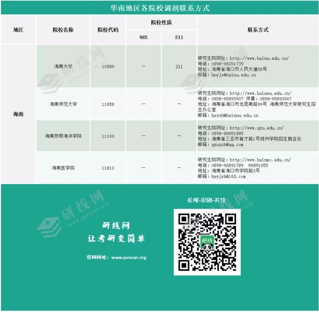 以上就是“2020年華南地區院校調劑聯系方式查詢”的全部內容,更多調劑相關內容,請關注“調劑信息”欄目。祝您考研成功!