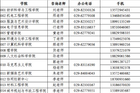 聯(lián)系部門(mén):西安工程大學(xué)研究生招生辦公室(金花校區(qū)教學(xué)主樓1-1003室)