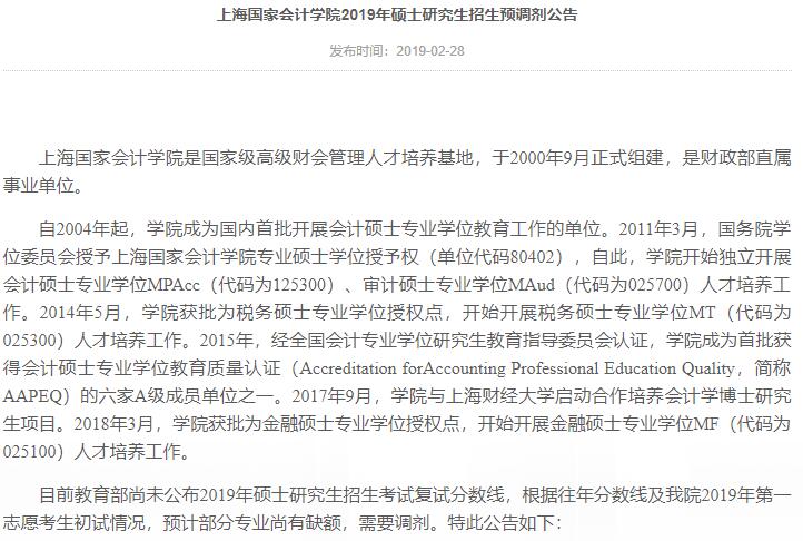 以上是小編整理的“MPAcc接受調劑的院校 | 上海國家會計學院2019年接收MPAcc調劑的通知”,更多關于MPAcc院校調劑信息,盡在調劑欄目,預祝大家考研成功!