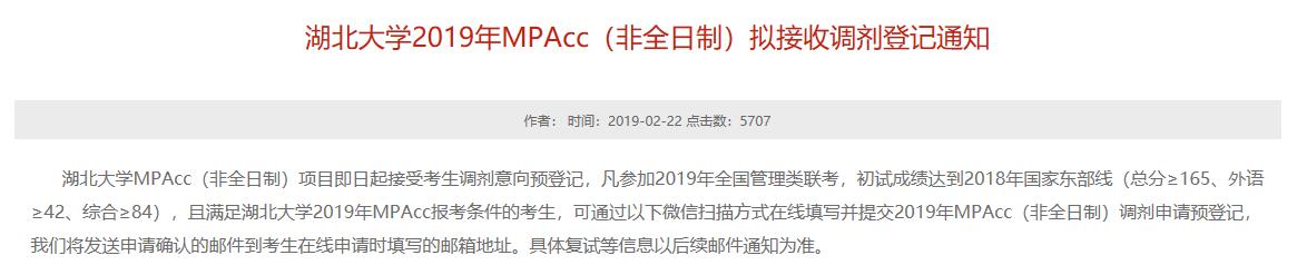以上是小編整理的“MPAcc接受調劑的院校 | 湖北大學大學2019年接收MPAcc調劑的通知”,更多關于MPAcc院校調劑信息,盡在調劑欄目,預祝大家考研成功!