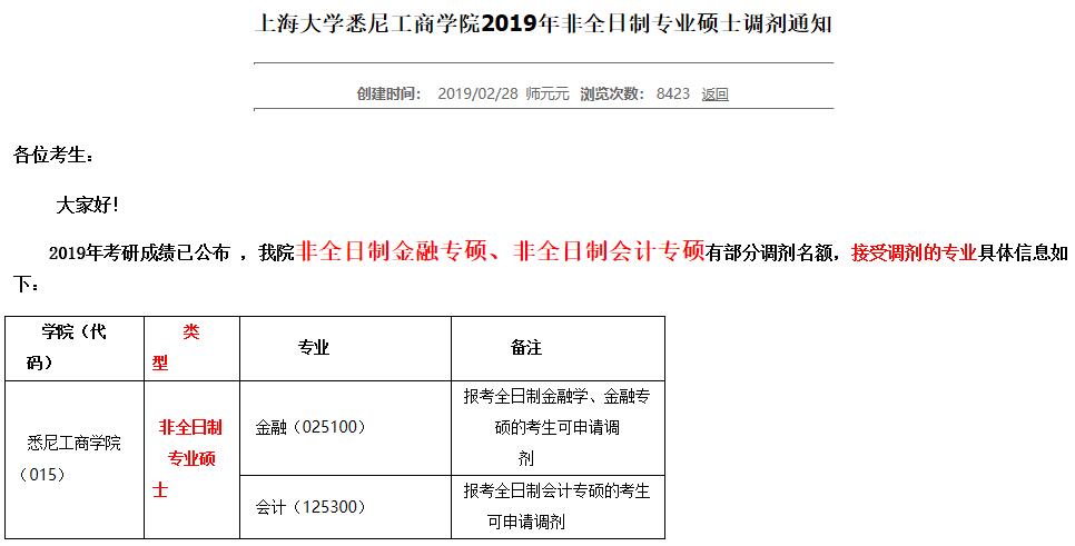 2019年考研成績已公布 ,我院非全日制金融專碩、非全日制會計專碩有部分調(diào)劑名額,接受調(diào)劑的專業(yè)具體信息如下: