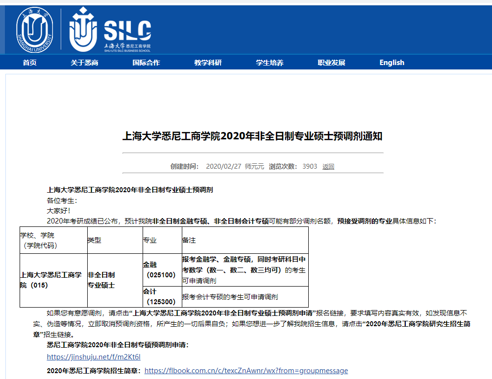 上海大學悉尼工商學院2020年非全日制專業(yè)碩士預調(diào)劑