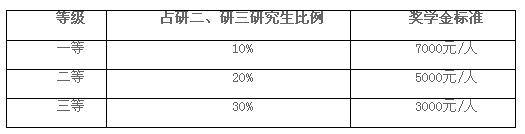研究生學校助學金標準為3000元/學年(不含有固定工資收入的研究生以及破格錄取研究生)。