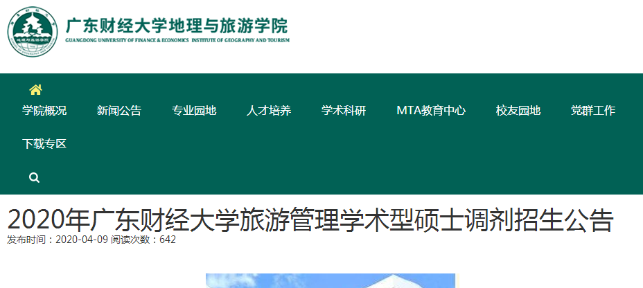 以上就是“2020考研調(diào)劑信息:2020年廣東財(cái)經(jīng)大學(xué)旅游管理學(xué)術(shù)型碩士調(diào)劑招生公告”的全部?jī)?nèi)容!更多考研調(diào)劑內(nèi)容,請(qǐng)關(guān)注考研調(diào)劑信息欄目!