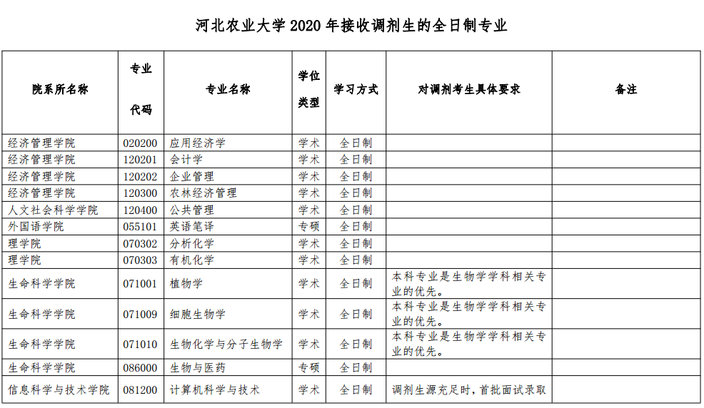 2.如有個(gè)別專業(yè)需要再次開通“調(diào)劑系統(tǒng)”的,我校將在研究生學(xué)院網(wǎng)站及“河北農(nóng)業(yè)大學(xué)研究生招生”微信公眾號(hào)發(fā)布再次調(diào)劑公告。