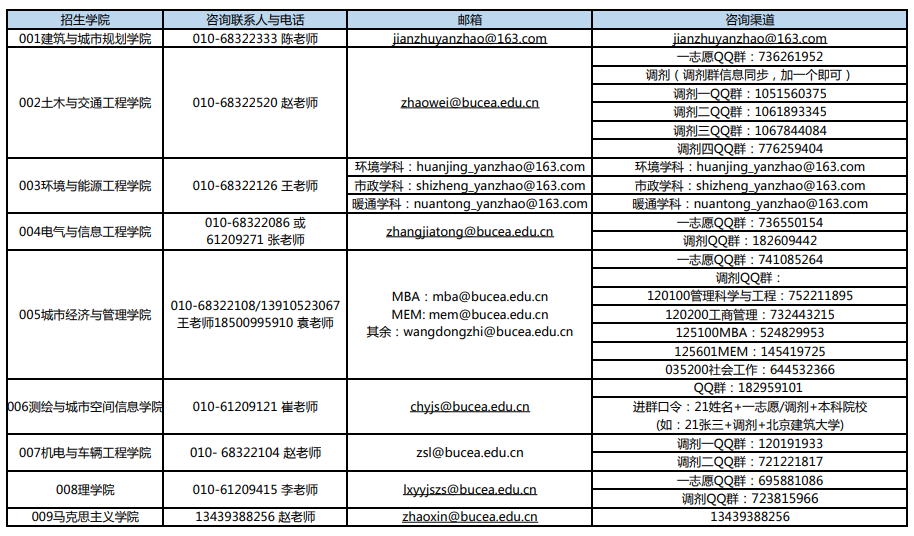 (1)請考生按照報考專業所在學院,添加以下咨詢渠道咨詢復試、調劑等相關問題。