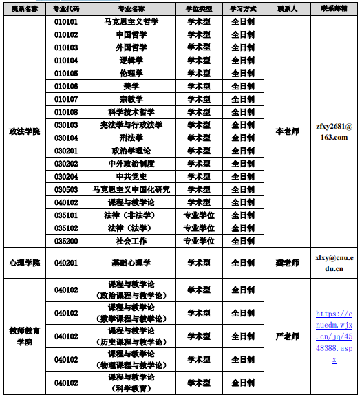 首都師范大學 2021 年碩士研究生接收調劑專業信息及調劑基本原則一、我校以下專業可接收部分調劑生,有調劑意向考生可將個人信息發至相關院系郵箱。我校最終調劑信息以各專業在“中國研究生招生信息網”發布的調劑信息為準。2021 年我校“退役大學生士兵”專項計劃不接收調劑。按照教育部規定,3 月 20 日左右中國研究生招生信息網調劑系統開通之后,調劑考生必須登陸“中國研究生招生信息網”的網上調劑系統填報調劑申請并辦理相關調劑手續,否則調劑無效。