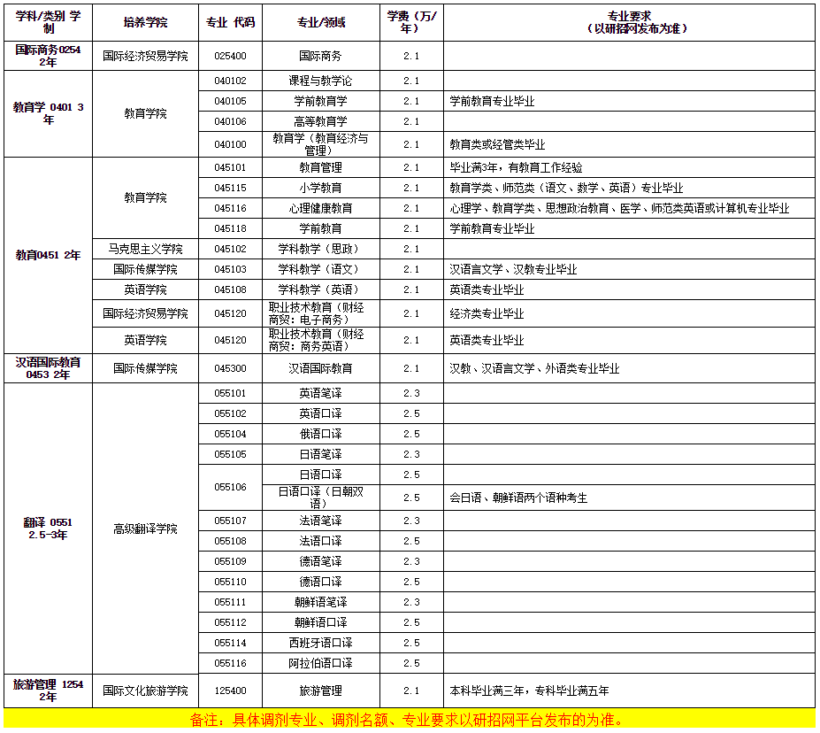 2. 專業要求:調入專業與第一志愿報考專業相同或相近,應在同一學科門類范圍內。畢業專業等相關要求詳見上表。