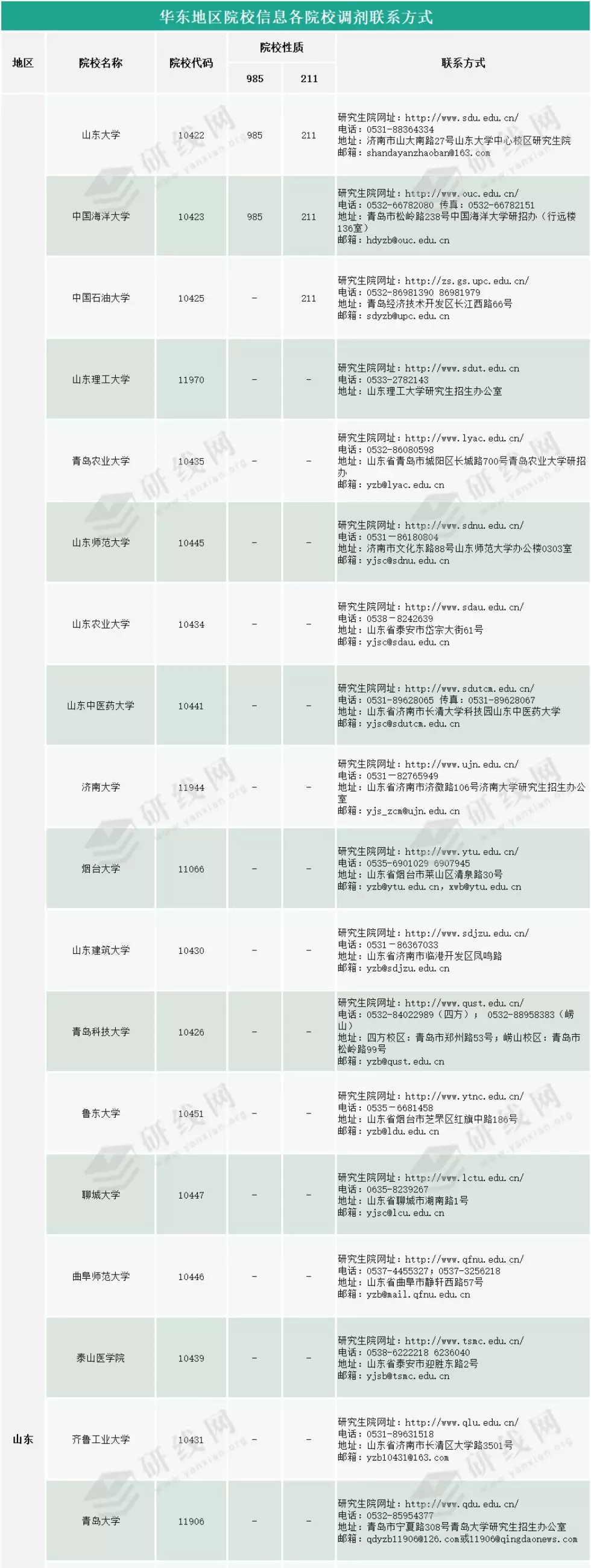 【調劑信息】華東地區院校調劑聯系方式查詢!