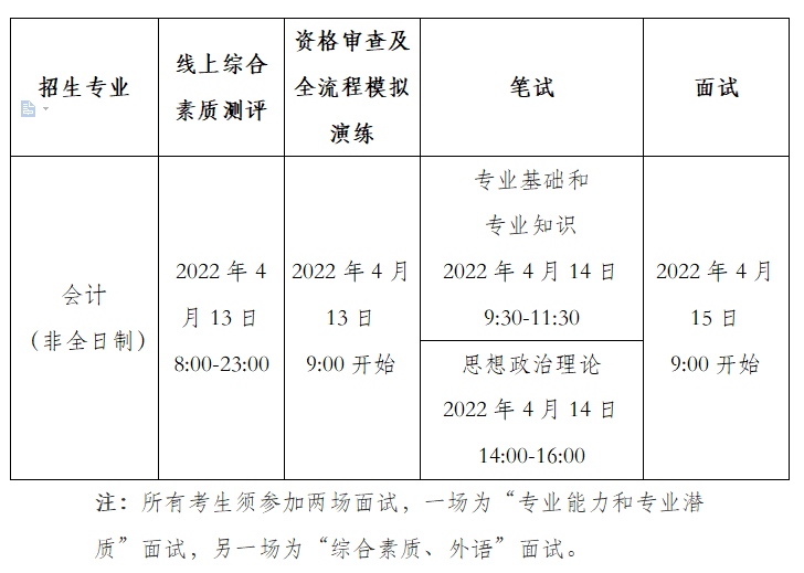 (一)考生須參加2022年全國(guó)碩士研究生招生統(tǒng)一考試,且第一志愿報(bào)考財(cái)科院或其他院校的會(huì)計(jì)、審計(jì)專業(yè),初試成績(jī)總分不低于228分,單科成績(jī)均達(dá)到國(guó)家教育部規(guī)定的A 類地區(qū)考生本專業(yè)復(fù)試分?jǐn)?shù)線要求,未被財(cái)科院第一志愿擬錄取的考生還須滿足復(fù)試專業(yè)課及格。