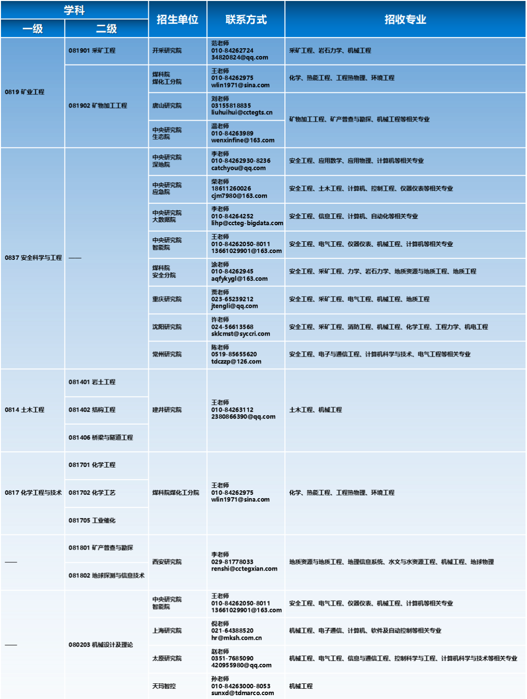 煤炭科學研究總院2024年可接收與招生學科專業(yè)相同或相近的學術(shù)型碩士考生、統(tǒng)考科目為英語(一)與數(shù)學(一)的專業(yè)型碩士考生的調(diào)劑申請,歡迎有意向調(diào)劑到我院的考生咨詢。