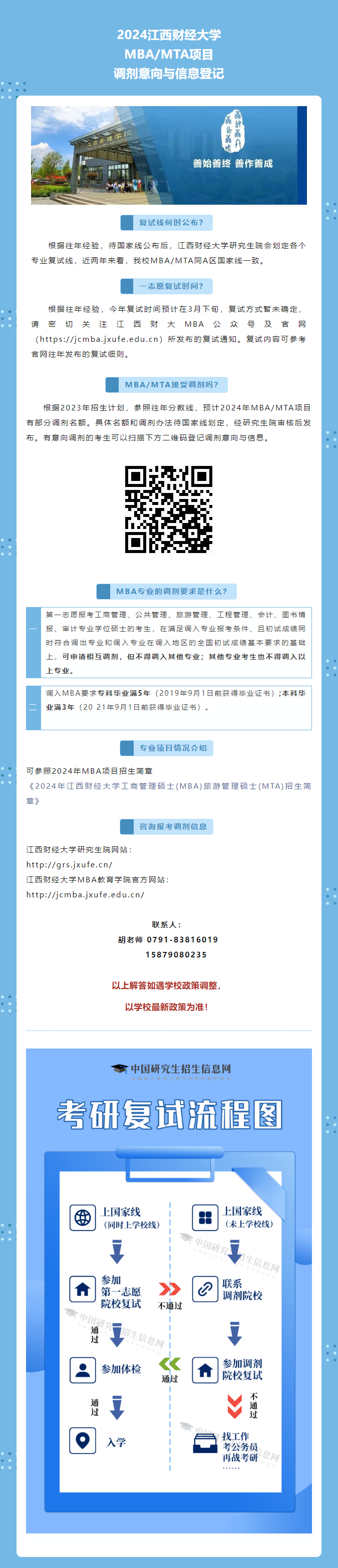 2024考研調劑:2024江西財經大學MBA/MTA項目調劑意向與信息登記