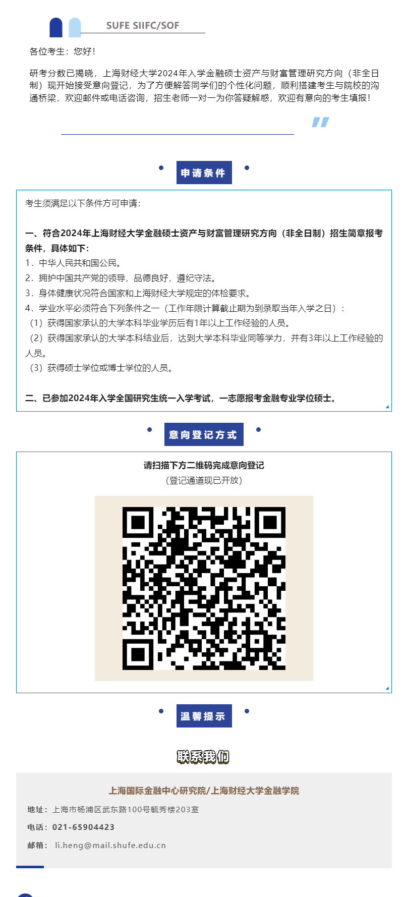 2024考研調(diào)劑:上海財經(jīng)大學2024年入學金融碩士資產(chǎn)與財富管理研究方向(非全日制)意向登記